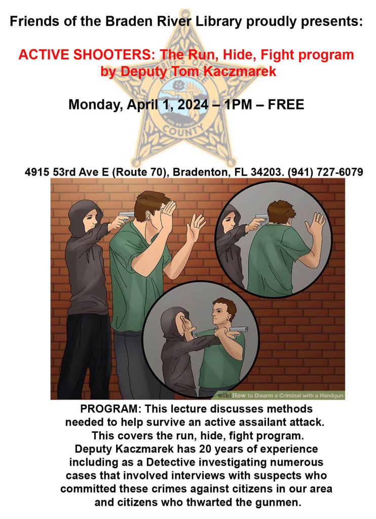 4/1/24 – 1PM – Adult – Active Shooters by Deputy Tom Kaczmarek, Manatee County Sheriff’s Office